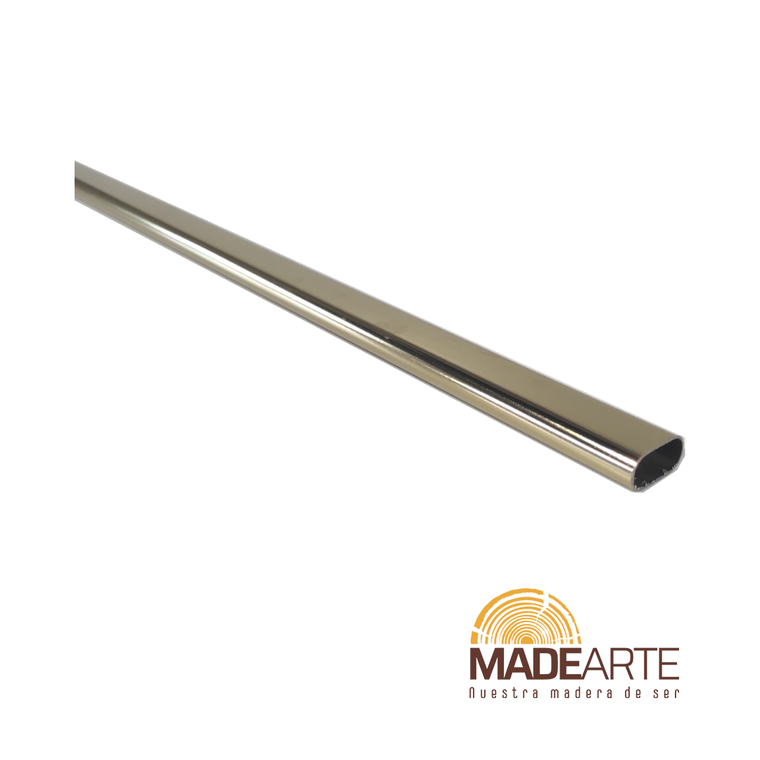 Barra de armario con forma ovalada ideada para soportar una carga ligera  Está fabricada en acero de color oro con acabado cromado de gran resistencia. Podrás adquirir los soportes y fijaciones aparte y conseguir el espacio de almacenamiento necesario para tu ropa. Medidas: 1 m de largo hasta 2m.